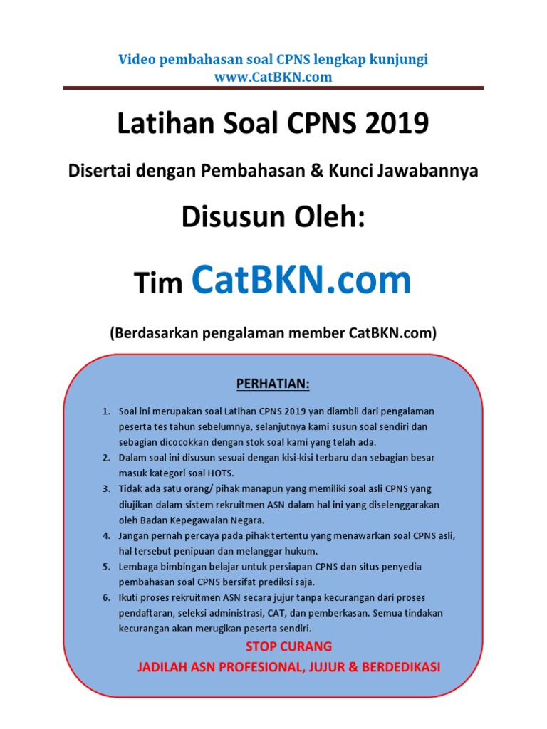 Soal cpns 2019 sering muncul dan pembahasan kunci jawaban lengkap yang mencakup twk tiu tkp dimana setiap.