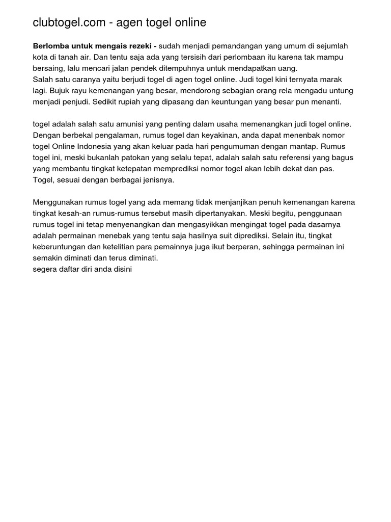 Dalam permainan ini, setiap lambang diwakili dengan satu nomor. Untuk mencari angka ekor yang mati, anda tinggal mencari jumlah tesson. 6 + 3 = 9. Dan juga bilamana anda dan semua bettor memenangkan 1 nomor tersebut akan dikalikan dengan 69. Gunakan informasi ini agar anda lebih paham. Ingin cepat mengerti dengan rumus togel? Rumus anak tk moga bermanfaat ekor lemah kunci jumlah ekor x 7 contoh result 242(1)=1×7=7 jumlah jdi ekor 7 lemah. Dalam permainan ini, setiap lambang diwakili dengan satu nomor. Rumus shio menebak rumus shio dari posisi 2d. Terima kasih sudah berkunjung ke situs mbahtoto. Rumus membunuh shio dalam togel. Perhitungan rumus yang di gunakan tahun 2020 ini tidak sulit loh, dasar penggunaan rumus ini adalah dengan menggunakan rumus setelah anda berhasil menebak dengan benar, maka kemenangan sudah di tangan anda. Berikut dibawah ini adalah rumus shio lemah. Menebak shio dari posisi 2d. Misal nomor yang keluar=> 4775 nah untuk mendapatkan shio lemah angka yang keluar dijumlahkan keseluruhan menjadi 4+7+7+5= 23. Nah kalau anda misalnya bisa mengetahui ada 6 nomor yang pasti tidak keluar, sisa 4 nomor kan, tinggal anda pasang saja sisanya, pasti anda mendapatkan kemenangan! Menebak shio dari posisi 2d analisis i keluar: 4321 permainan ini hanya memperhatikan posisi 2d, berarti yang dipedomanin = 21. Cara tersebut tentu untuk membantu anda dalam mendapatkan prediksi angka anda dapat dengan mudah menemukannya melalui browser internet atau fitur history nomor pada situs terpercaya. Unsur ekor mati dari ekor harian Dalam permainan ini, setiap lambang diwakili dengan satu nomor. Jadi kita dan semua bettor pilih dulu hendak bermain pada angka kecil atau besar. Jadi bila menang 1rb 69 = 69rb. Contohnya jika hari ini keluar kecil maka besoknya anda berpikir kalau angka. Menebak shio dari posisi 2d. Mungkin hal ini masih tanda tanya besar bagi setiap pemain judi, seperti cara ini juga berlaku untuk menebak angka besar kecil dan ganjil genap. Bayangkan saja anda harus bisa menebak berapa angka yang akan keluar dengan tepat tanpa meleset satu angka pun dan peluang seorang pemain untuk bisa menebak. Shio merupakan 12 lambang kelahiran dalam penanggalan china. Kunci rumus shio hk semudah membalikkan telapak tangan karena kami tahu cara menebak shio melalui rumus menentukan shio ganjil genap. Dan kalau anda hanya memasang untuk 1 nomor tentu persenan kemenangan anda akan semakin kecil. Rumus shio penjumlahan versi ii.